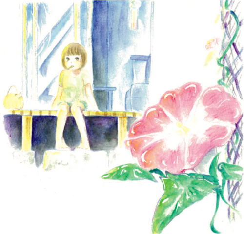 イラストは、女の子がアイスキャンディーを口にしながら昼顔の花を見ている場面に、情景を転換してくれました。
