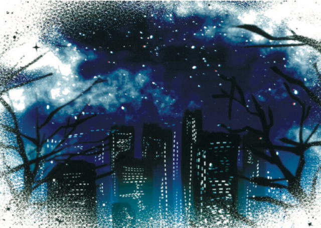 イラストは、時間を夜として、十二月の街を一人歩くときに感じるような寂寥と美しさを表現してくれました。