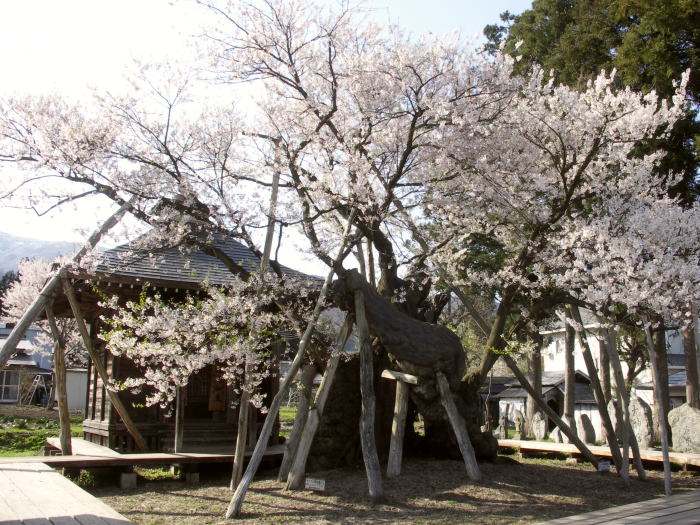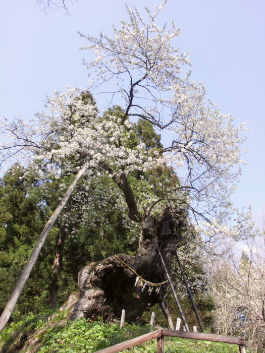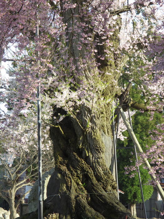 「古典桜」と呼ばれる、それらの桜には、美しさに加えて、古木ならではの「風格」、「孤高」とも言えるたたずまいがあり、花の咲く時期には、会いに行きたくなります。見ごろとなるのは、例年、四月の末から五月の初めで、大型連休と重なります。とはいえ、当然のことながら、開花の時期は、年によって異なるので、会いに行こうとお考えの方は次に述べるホームページで花のようすをご確認ください(今年は、例年より、開花が早いような気がするのですが、どうなのでしょうか)。