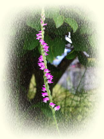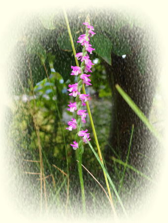 7月にふさわしい花は何かと考え、ネジバナにしました。7月に入って咲き始めたという、単純なことが主たる理由です。
